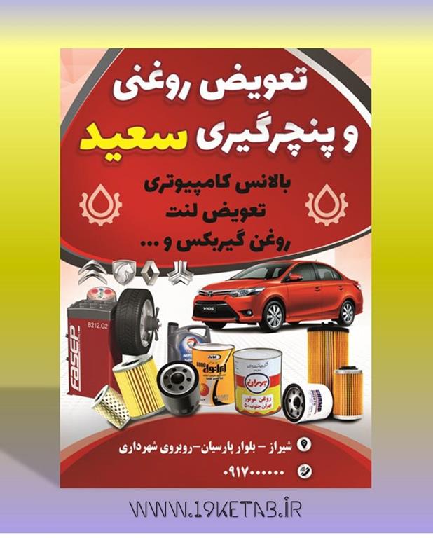 دانلود طرح لایه باز تراکت فروشگاه رینگ و لاستیک