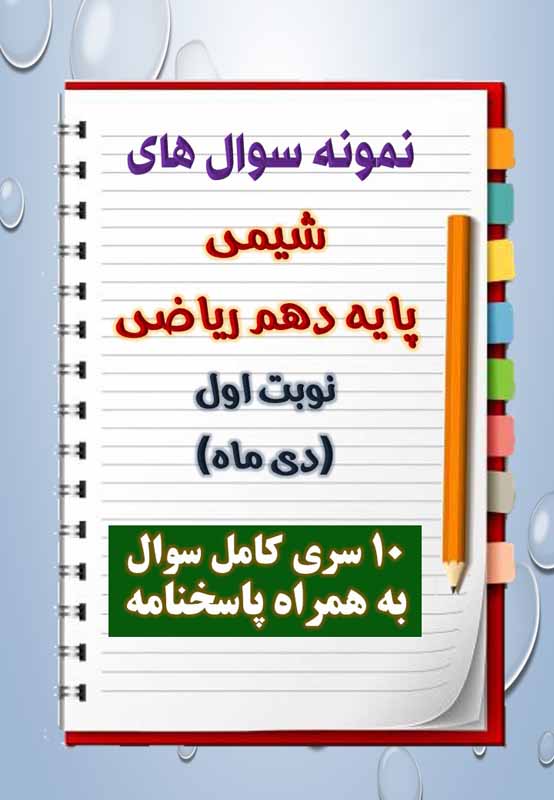 دانلود ده نمونه سوال شیمی دهم (رشته ریاضی) با پاسخنامه (نوبت اول)