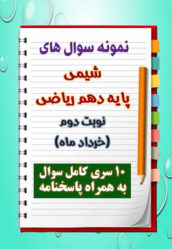 دانلود ده نمونه سوال شیمی دهم (رشته ریاضی) با پاسخنامه (نوبت دوم)