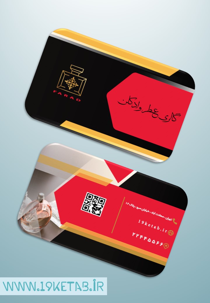 نمونه کارت ویزیت عطر و ادکلن لایه باز با قابلیت ویرایش رنگ و طرح به دلخواه شما