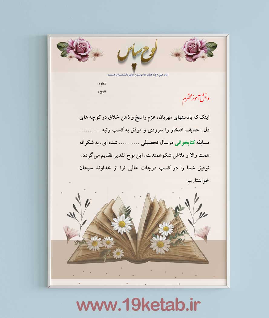لوح تقدیر مسابقات کتابخوانی 3