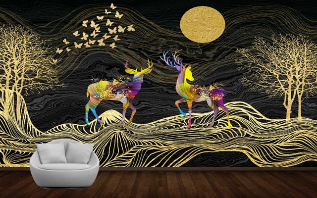 طرح کاغذ دیواری سه بعدی گل های آبی
