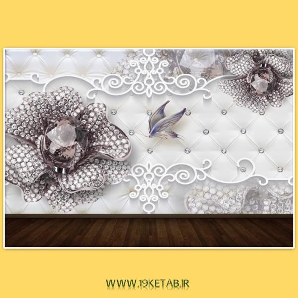 طرح کاغذ دیواری سه بعدی گل برجسته زمینه سفید